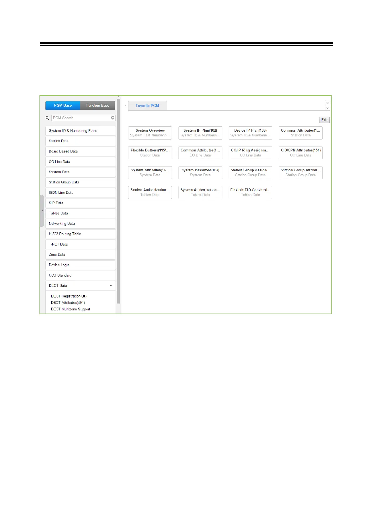 Selecting the DECT Data program group returns the sub-menu displayed in the left frame as
