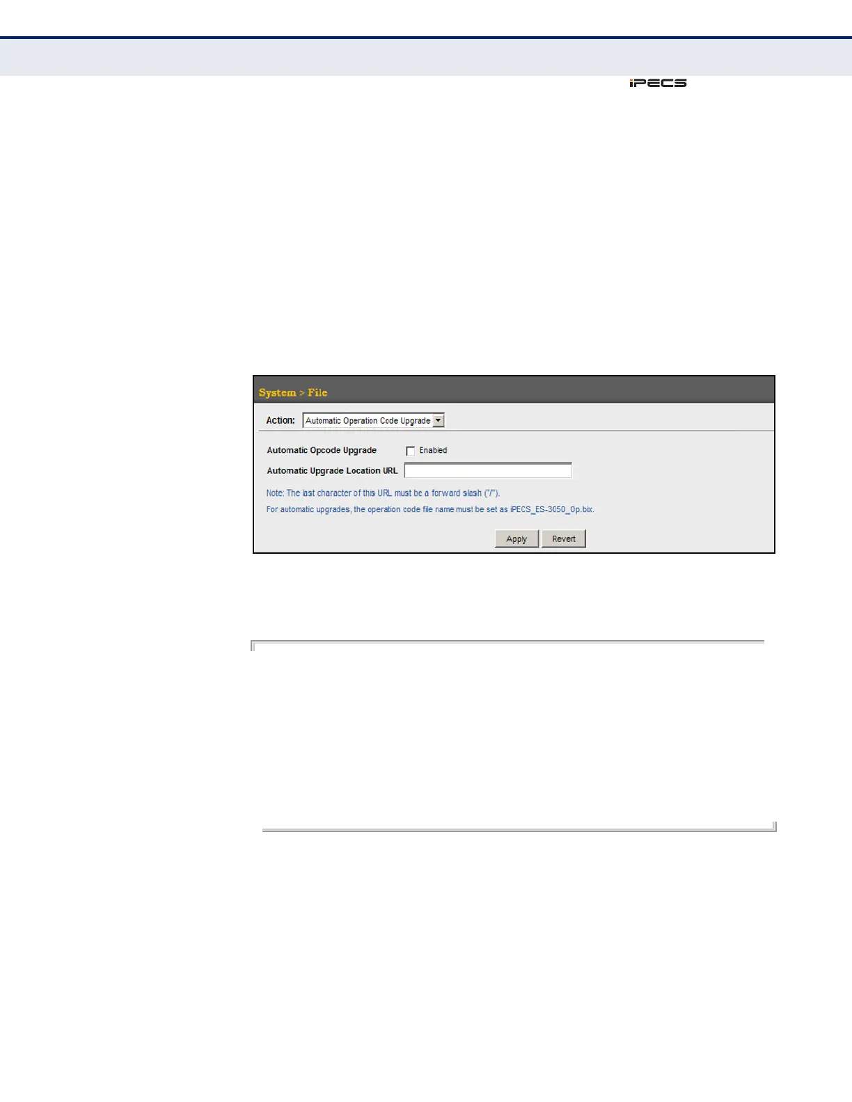 2. Select Automatic Operation Code Upgrade from the Action list.