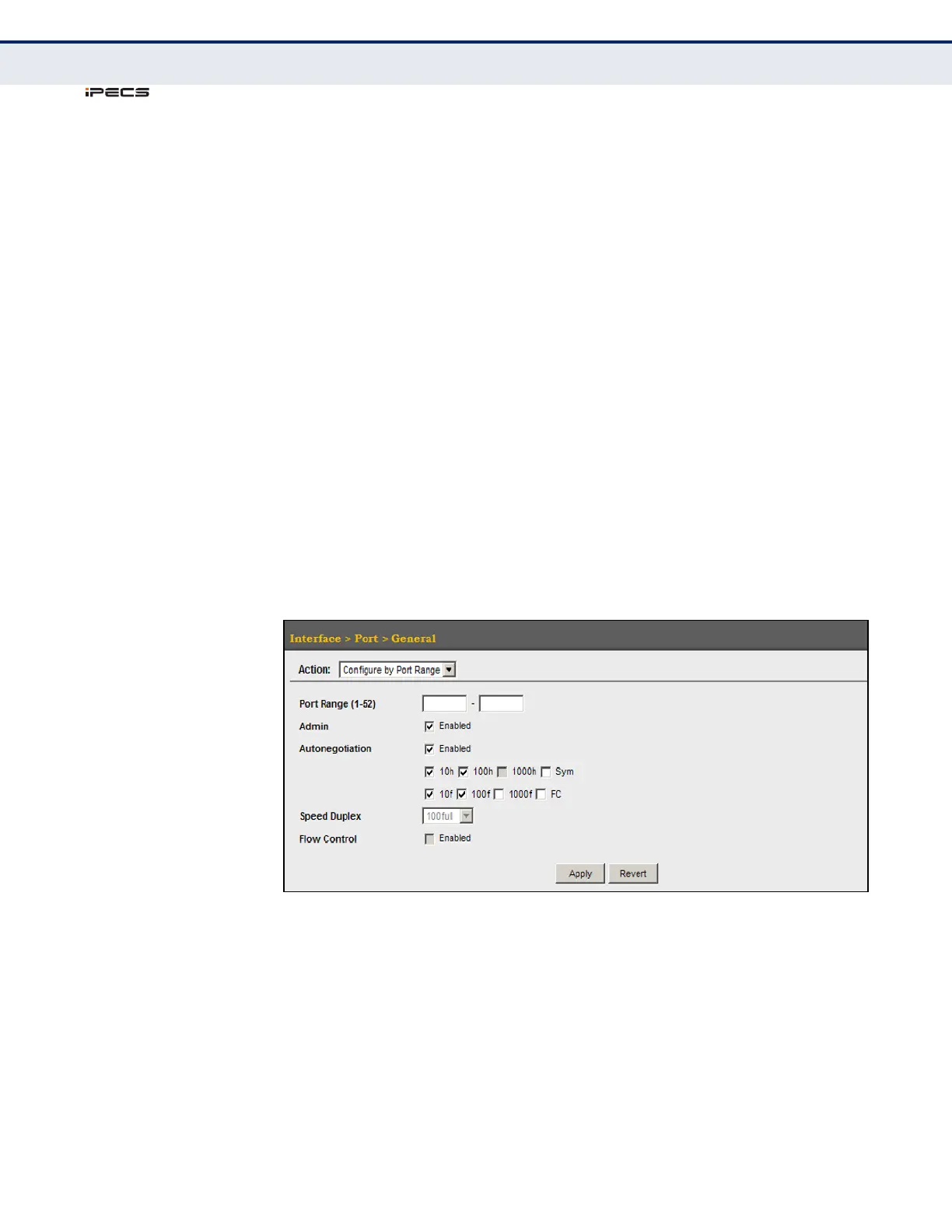 Use the Interface > Port > General (Configure by Port Range) page to