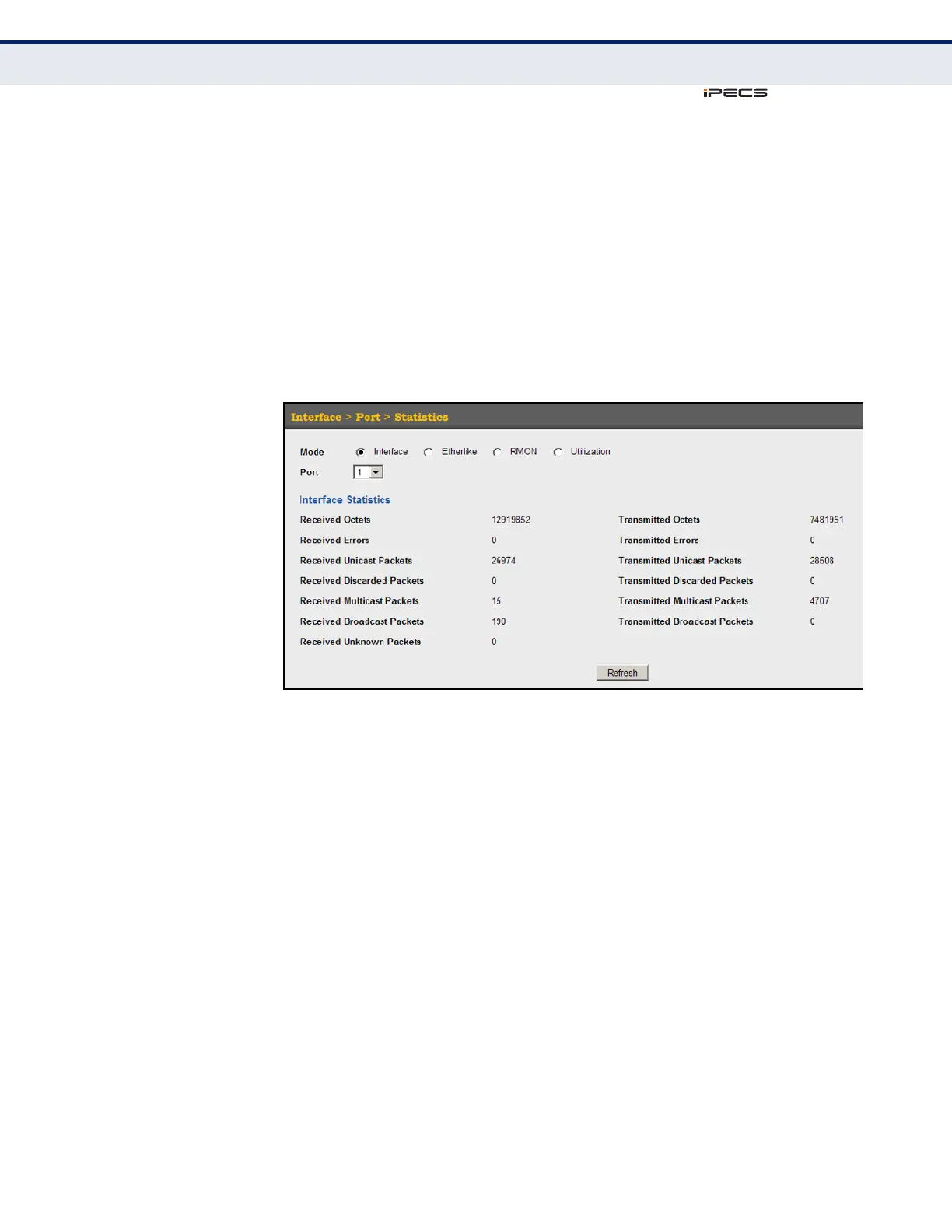 1. Click Interface, Port, Statistics.