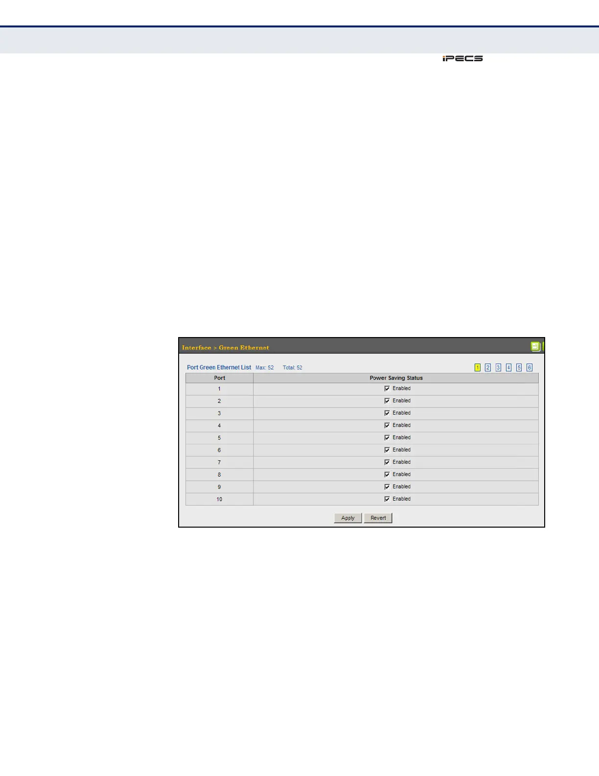 ◆ Port – Power saving mode only applies to the Gigabit Ethernet ports