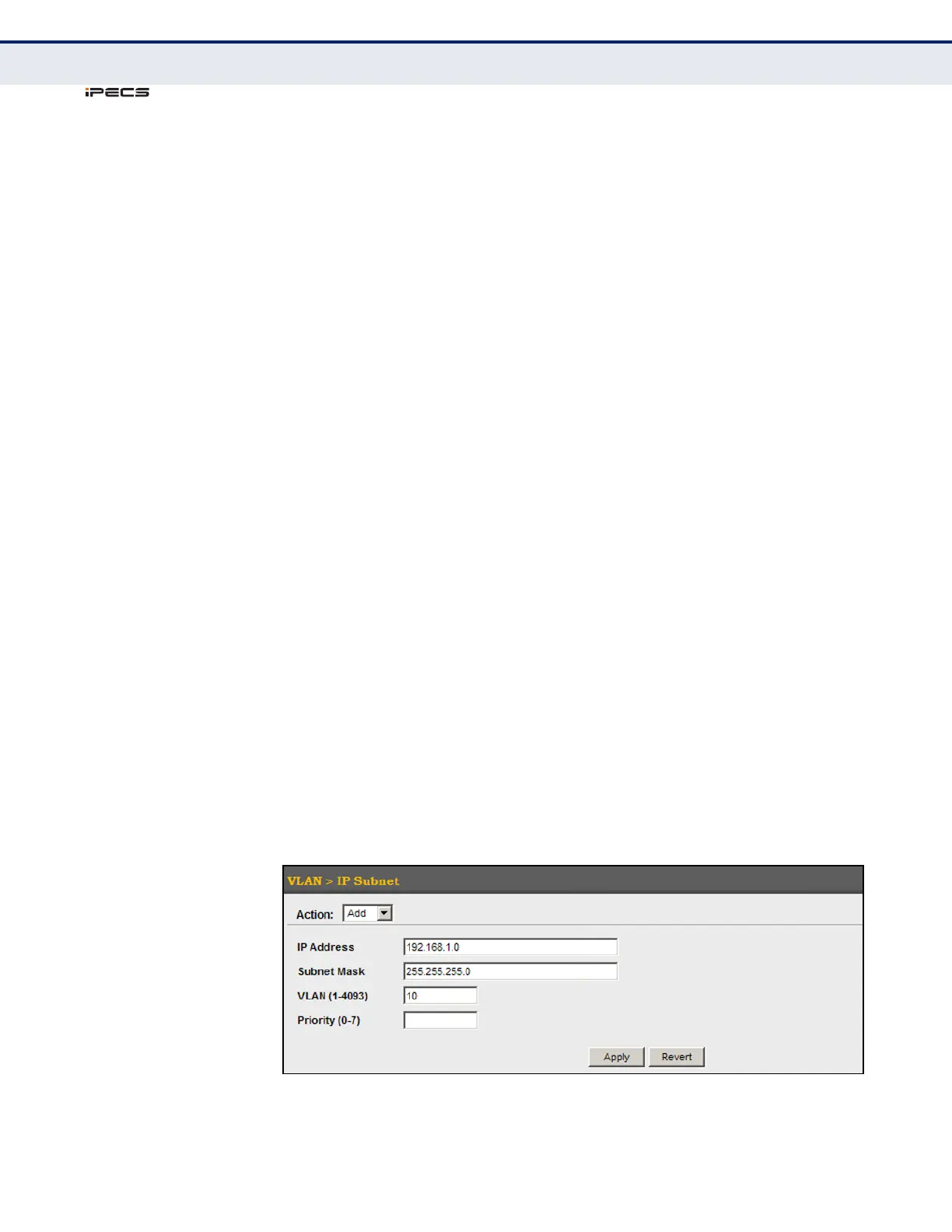 ◆ VLAN – VLAN to which matching IP subnet traffic is forwarded.