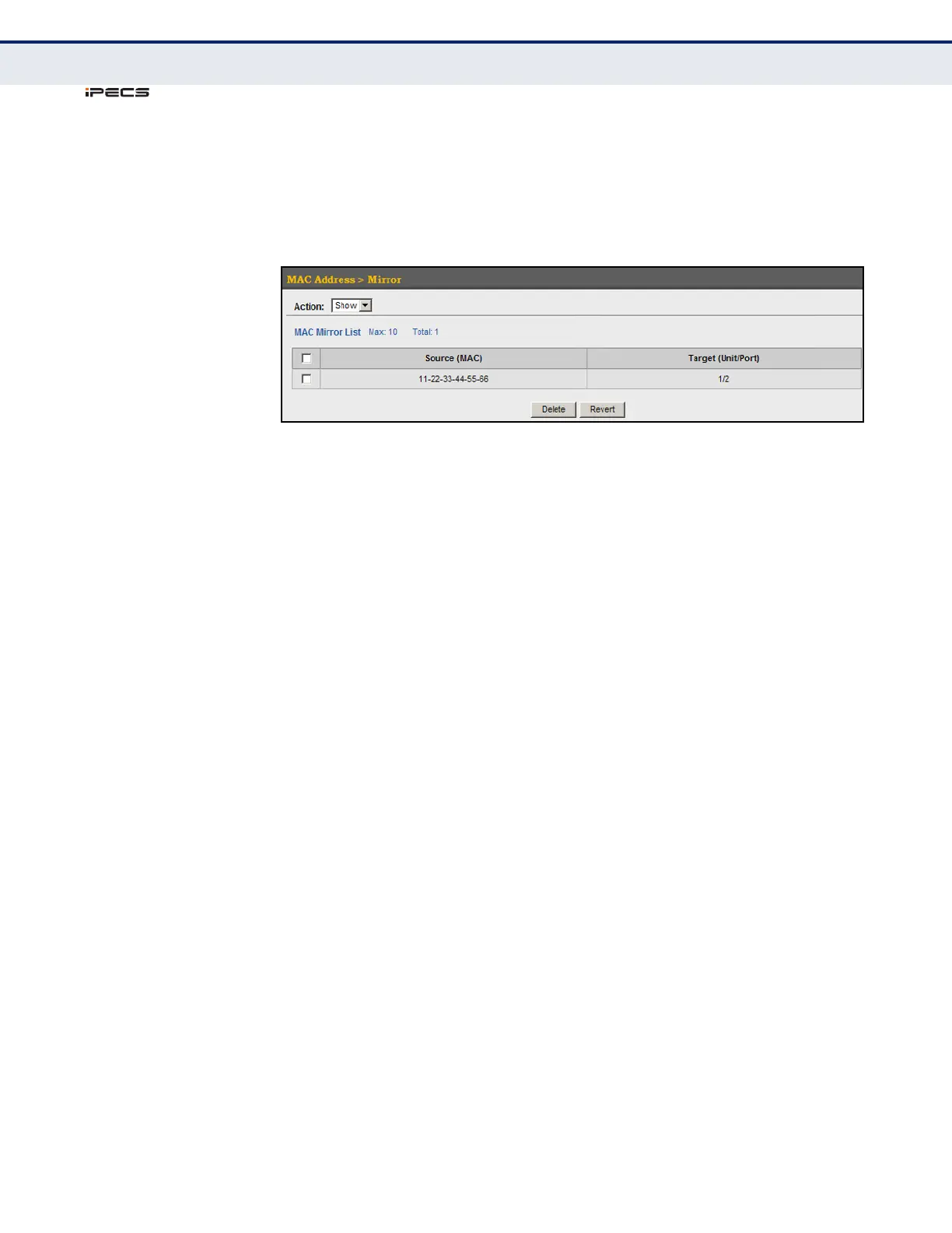 1. Click MAC Address, Mirror.