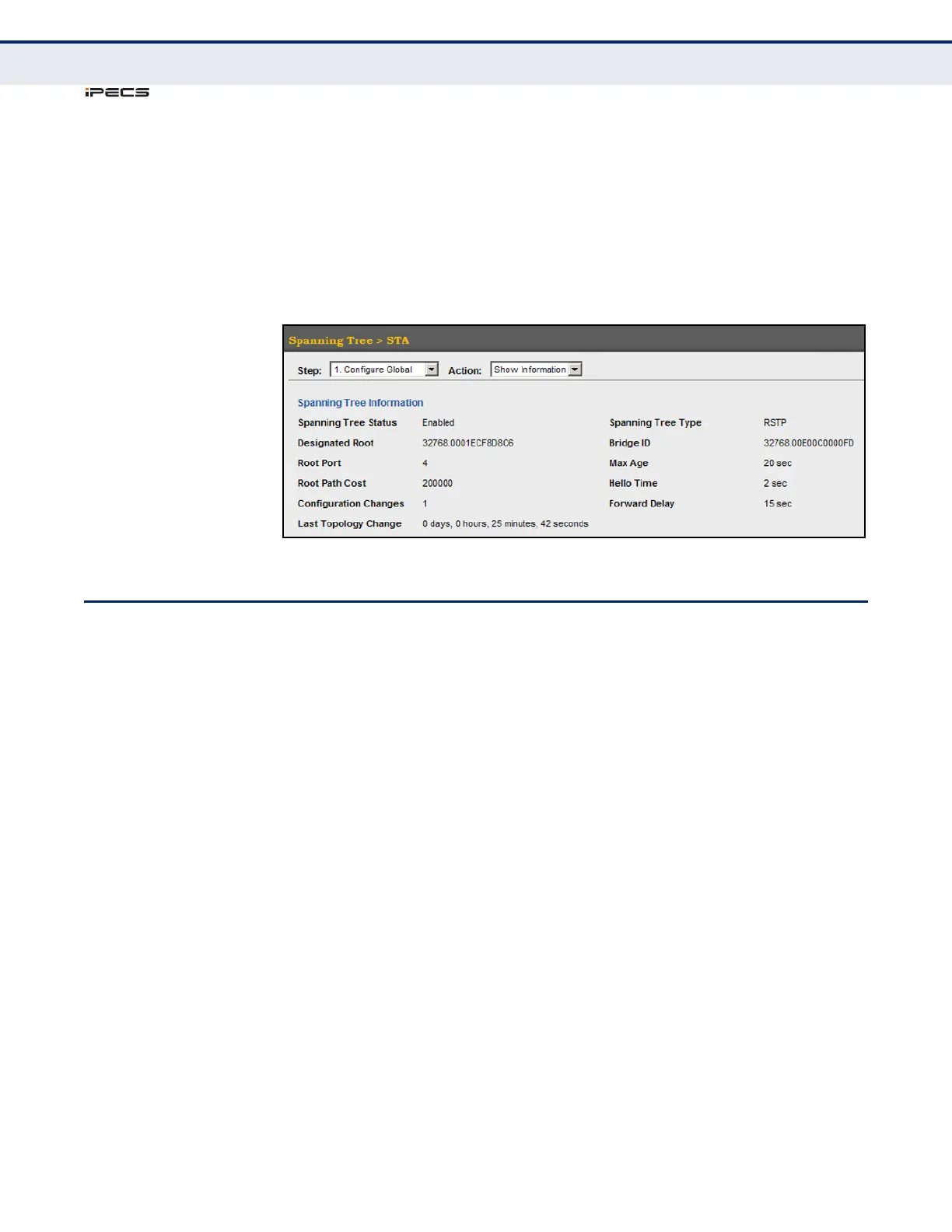 Figure 98: Displaying Global Settings for STA
