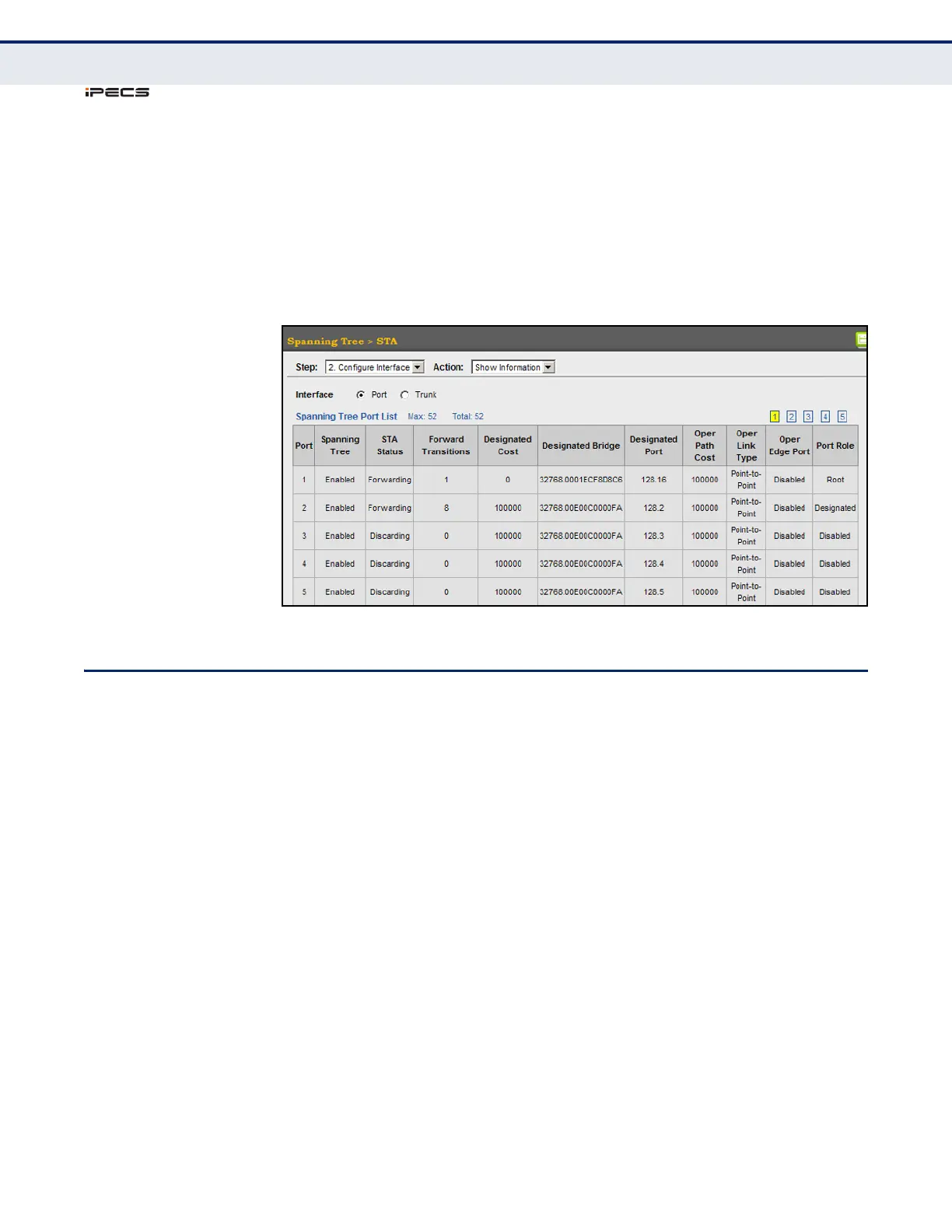 Figure 101: Displaying Interface Settings for STA