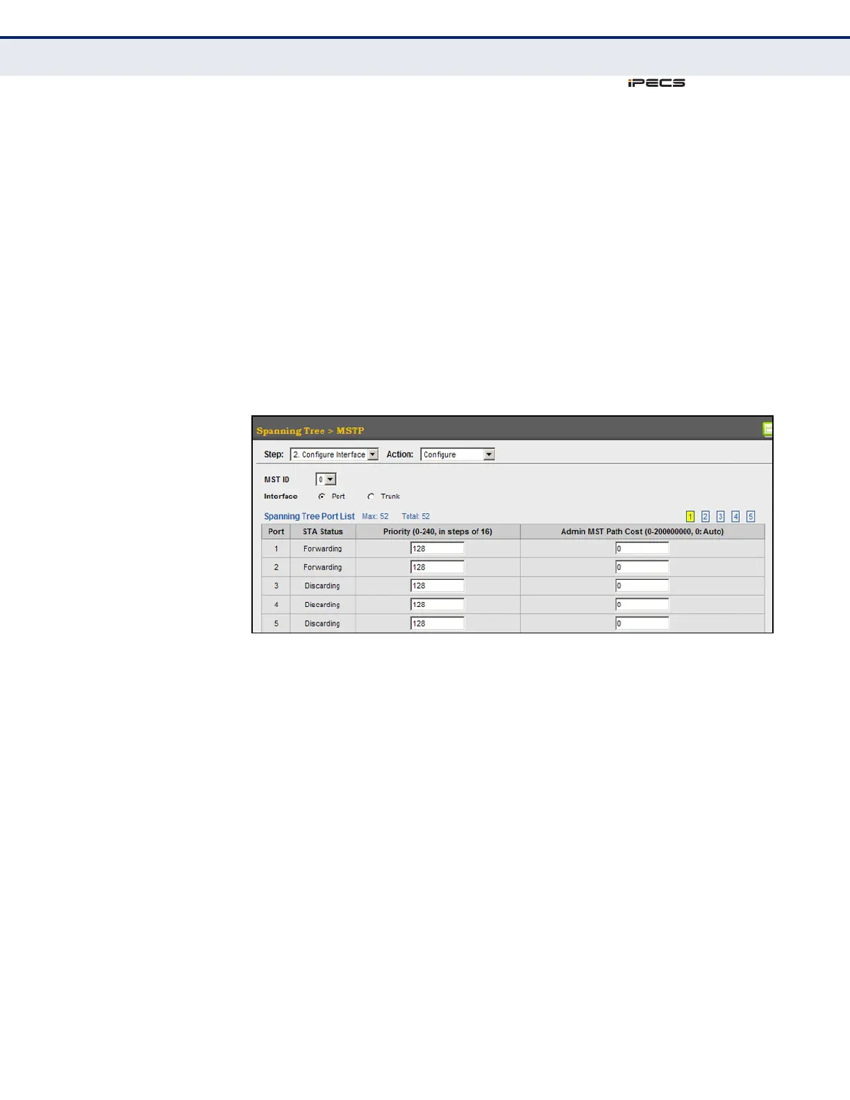 Configuring Interface Settings for MSTP
