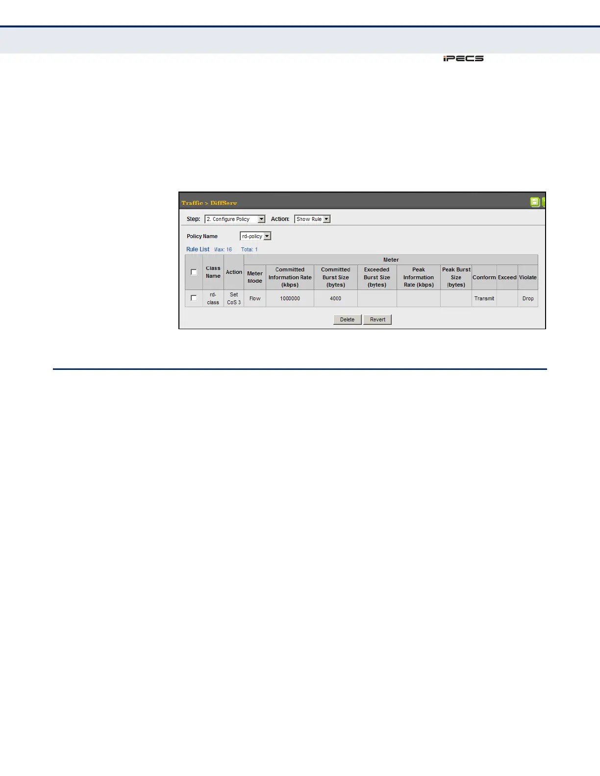 Use the Traffic > DiffServ (Configure Interface) page to bind a policy map