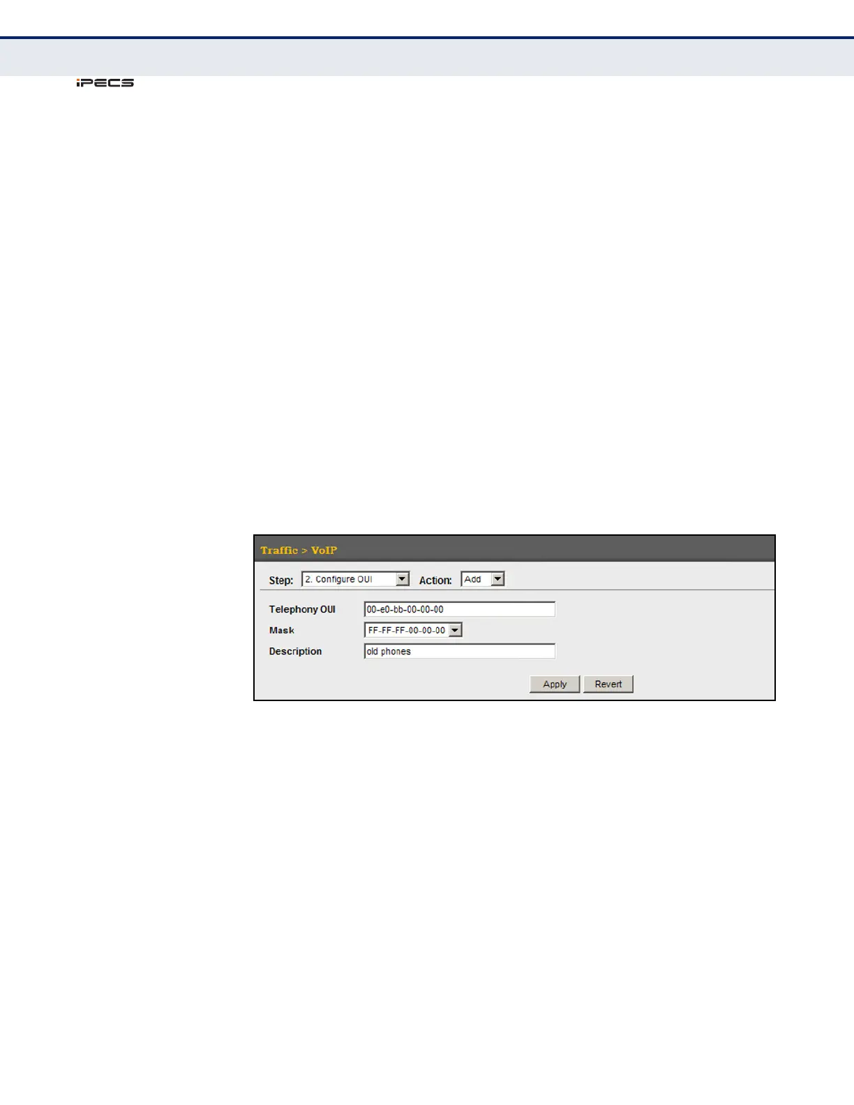 4. Enter a MAC address that specifies the OUI for VoIP devices in the