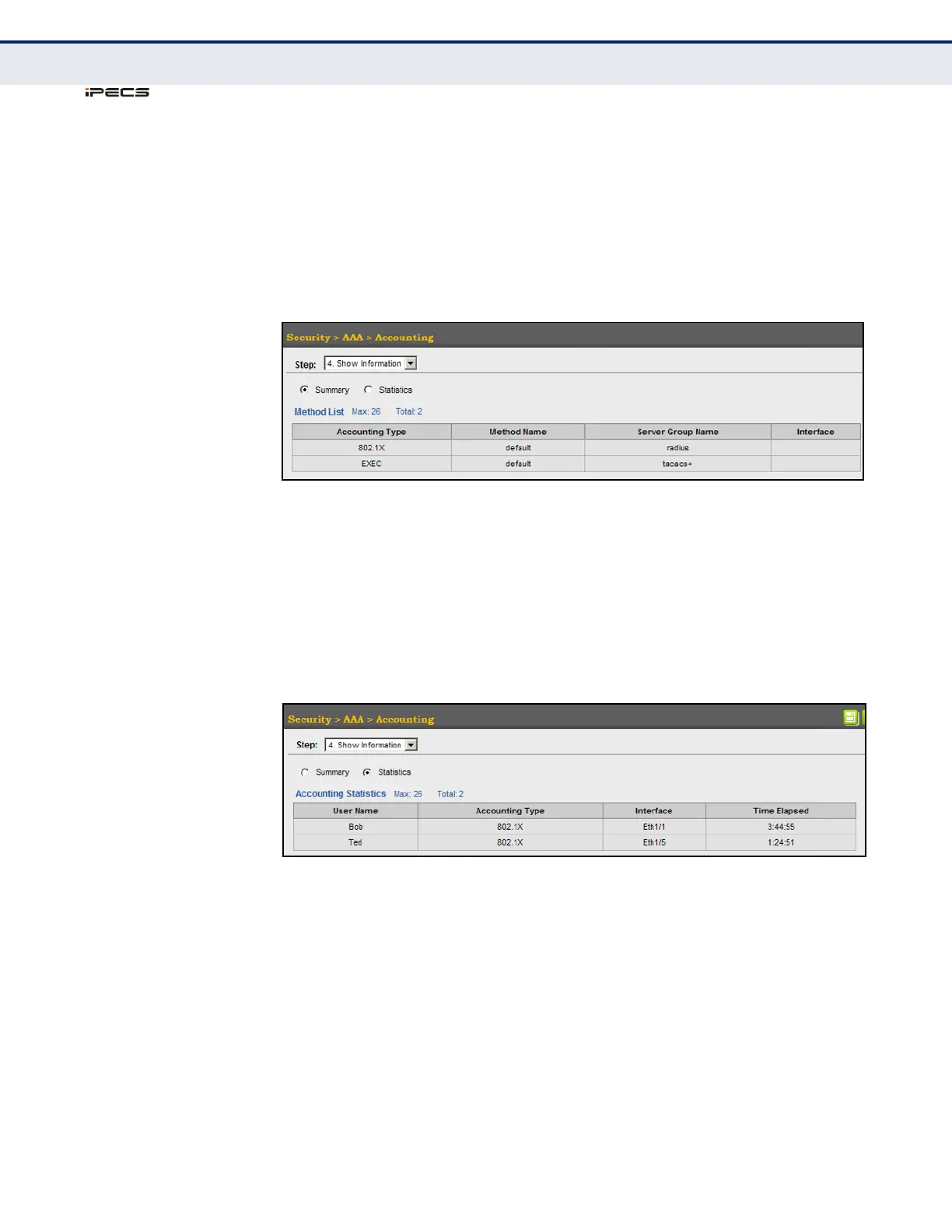 1. Click Security, AAA, Accounting.