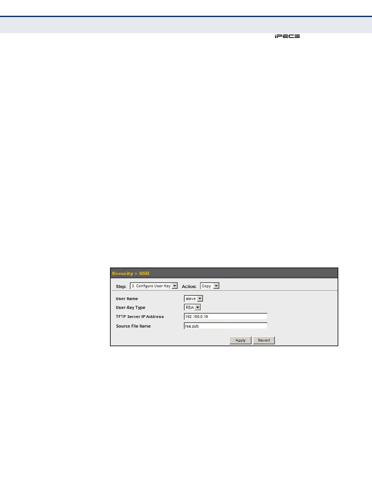 The switch uses only RSA Version 1 for SSHv1.5 clients and DSA