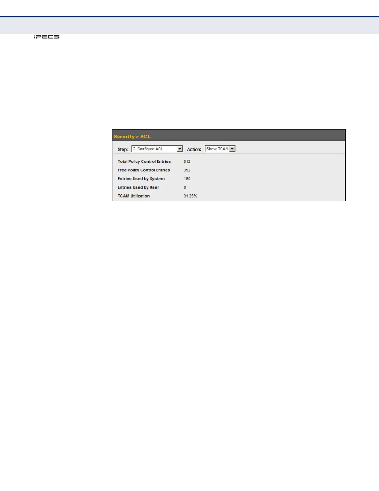 3. Select Show TCAM from the Action list.