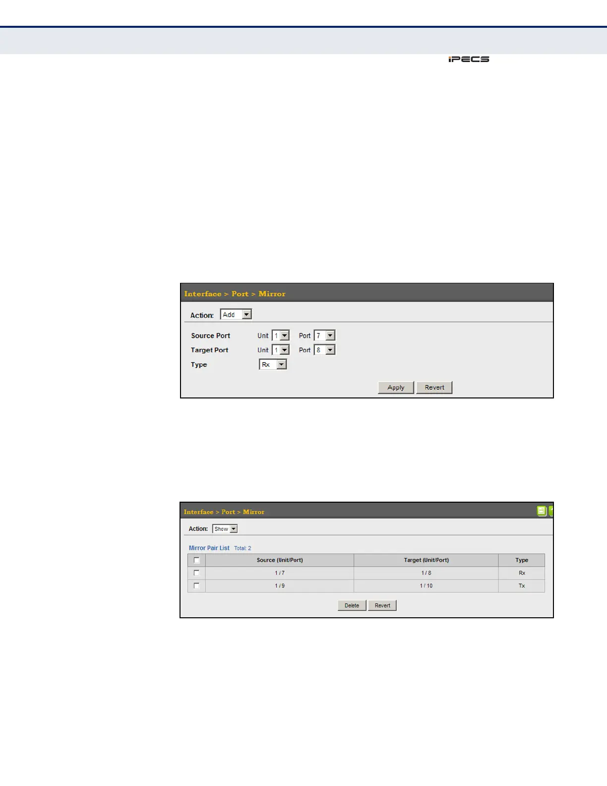 1. Click Interface, Port, Mirror.