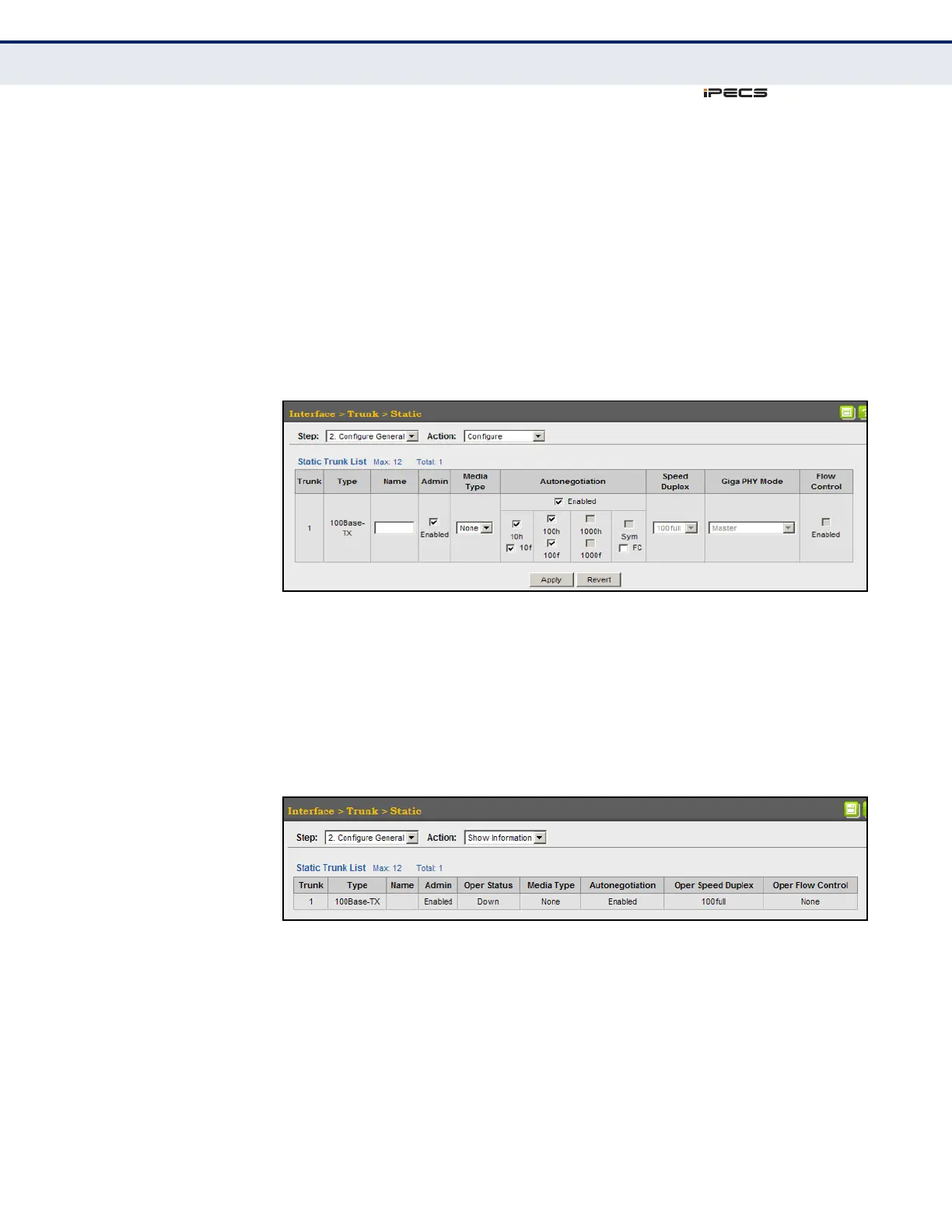 1. Click Interface, Trunk, Static.