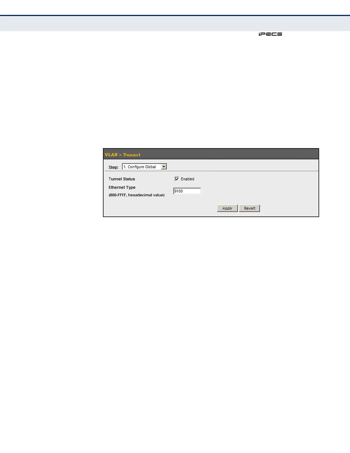 the switch. Then use the VLAN > Tunnel (Configure Interface) page to set