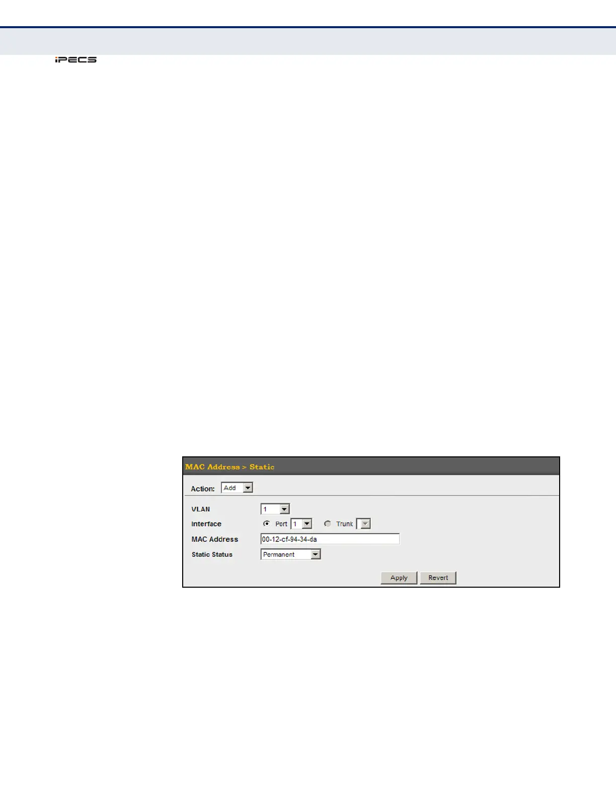 3. Specify the VLAN, the port or trunk to which the address will be