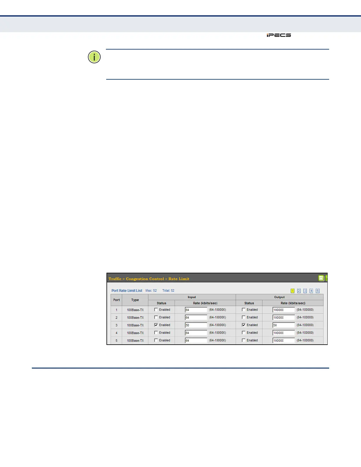2. Enable the Rate Limit Status for the required ports.