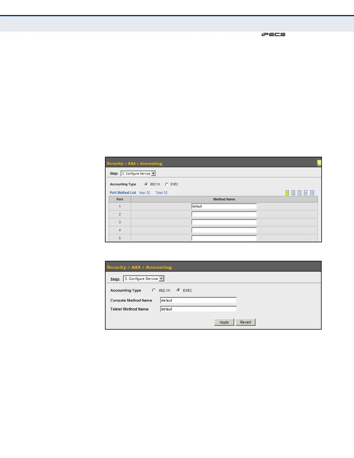 3. Select the accounting type (802.1X, Exec).