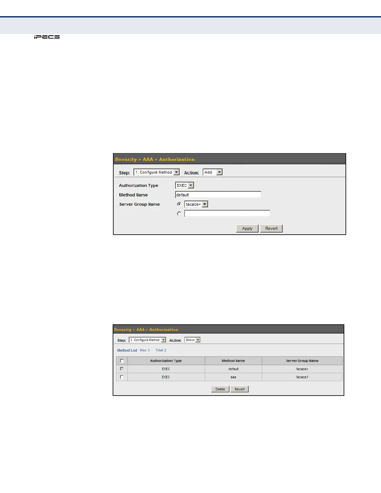 3. Specify the name of the authorization method and server group name.