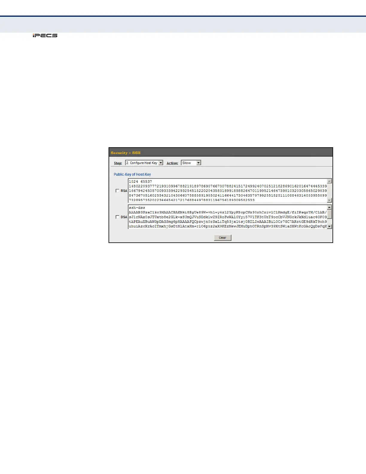 To display or clear the SSH host key pair: