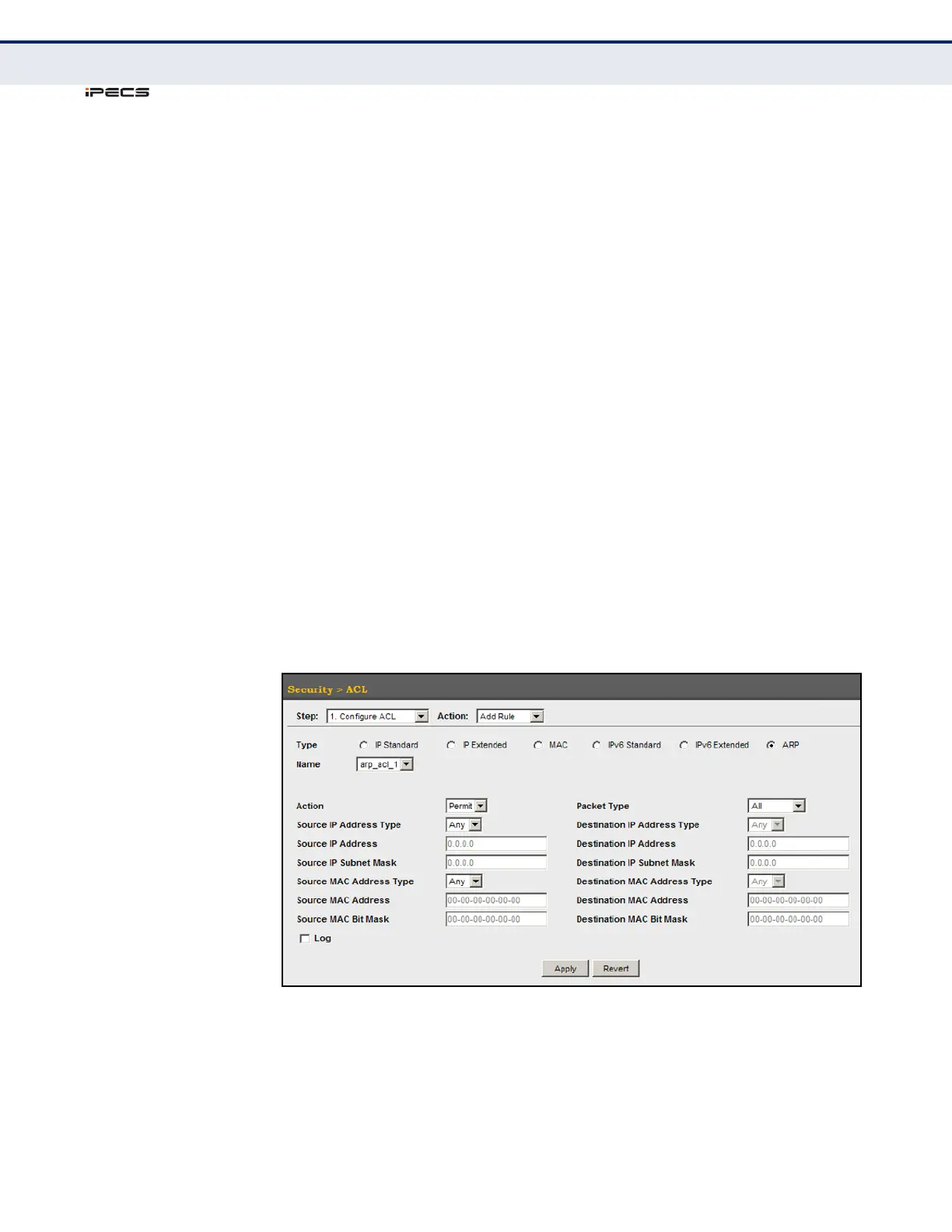 Figure 180: Configuring a ARP ACL