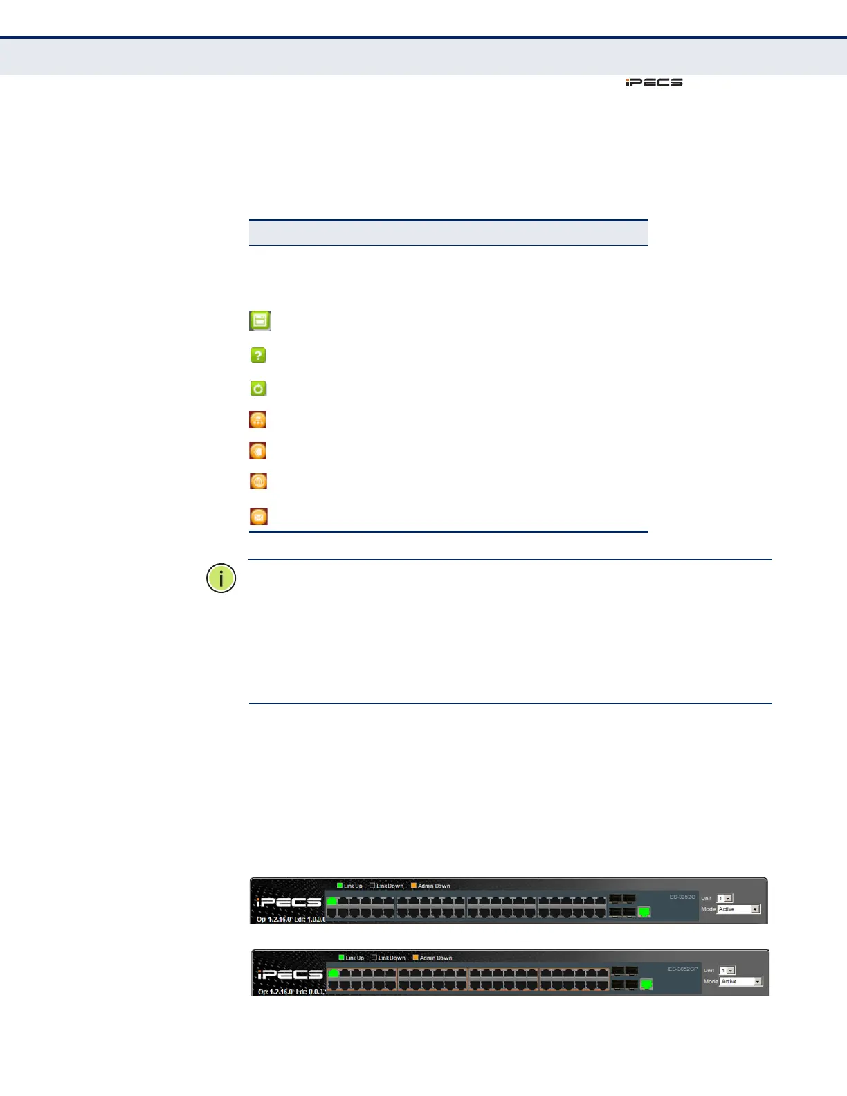 PANEL DISPLAY The web agent displays an image of the switch’s ports. The Mode can be
