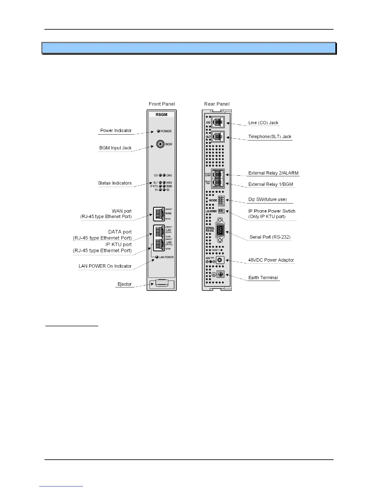 WHLD. The external AC/DC adaptor feeds power to the RSGM. The connectors and indicators