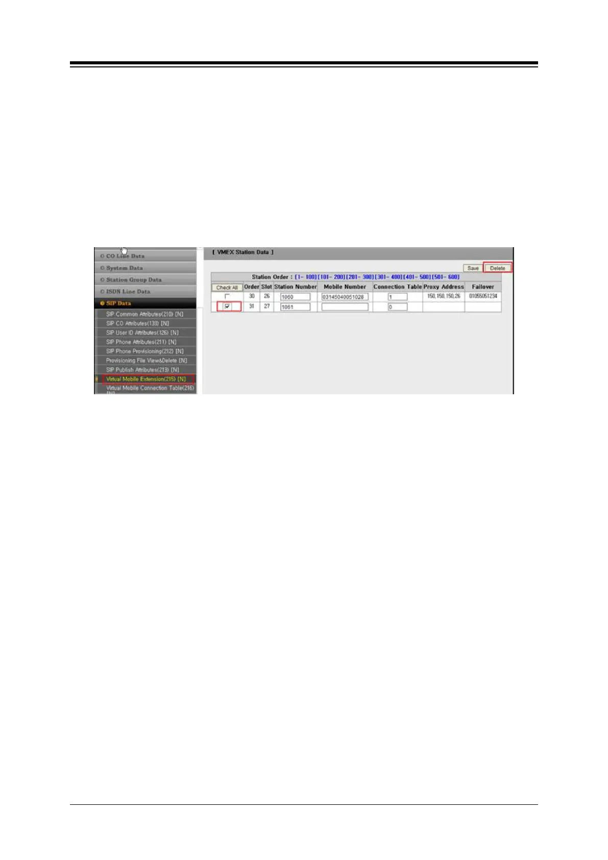 − check a station or stations and implement ‘delete’ button operation