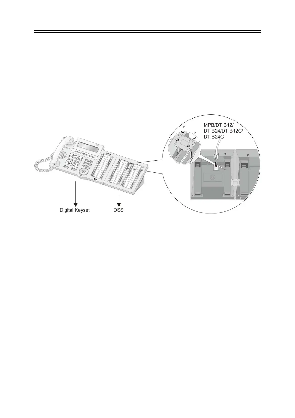 The LDP-7048 DSS Console is wired as a normal Digital Key Telephone to a separate port of a