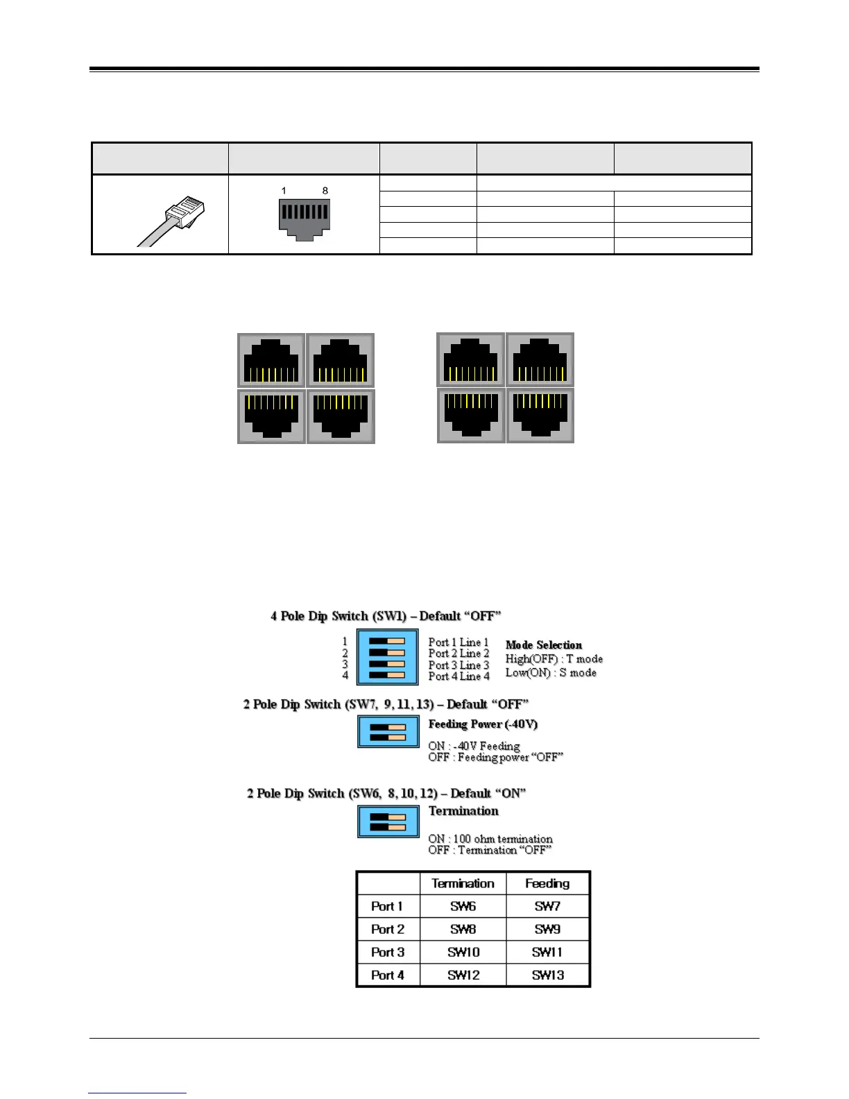 Upper side of RJ-45 – S-mode connection, Lower side of RJ-45 – T-mode connection