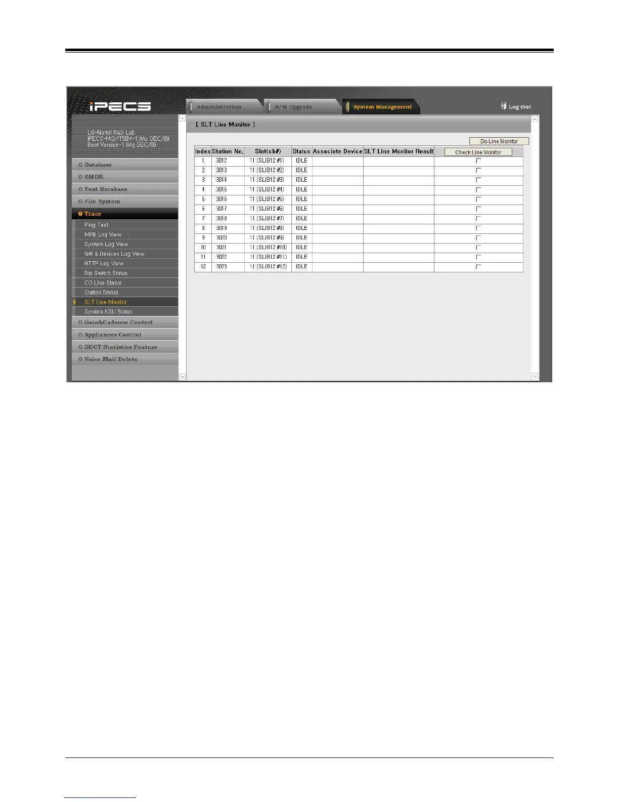 1. Click [System Management], [Trace] and [SLT Line Monitor].