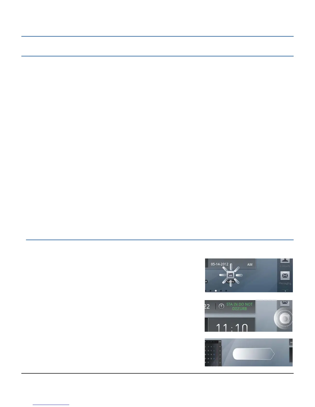 date, or status of music playing. Widgets settings are discussed in section 4.8 and 4.9, and include: