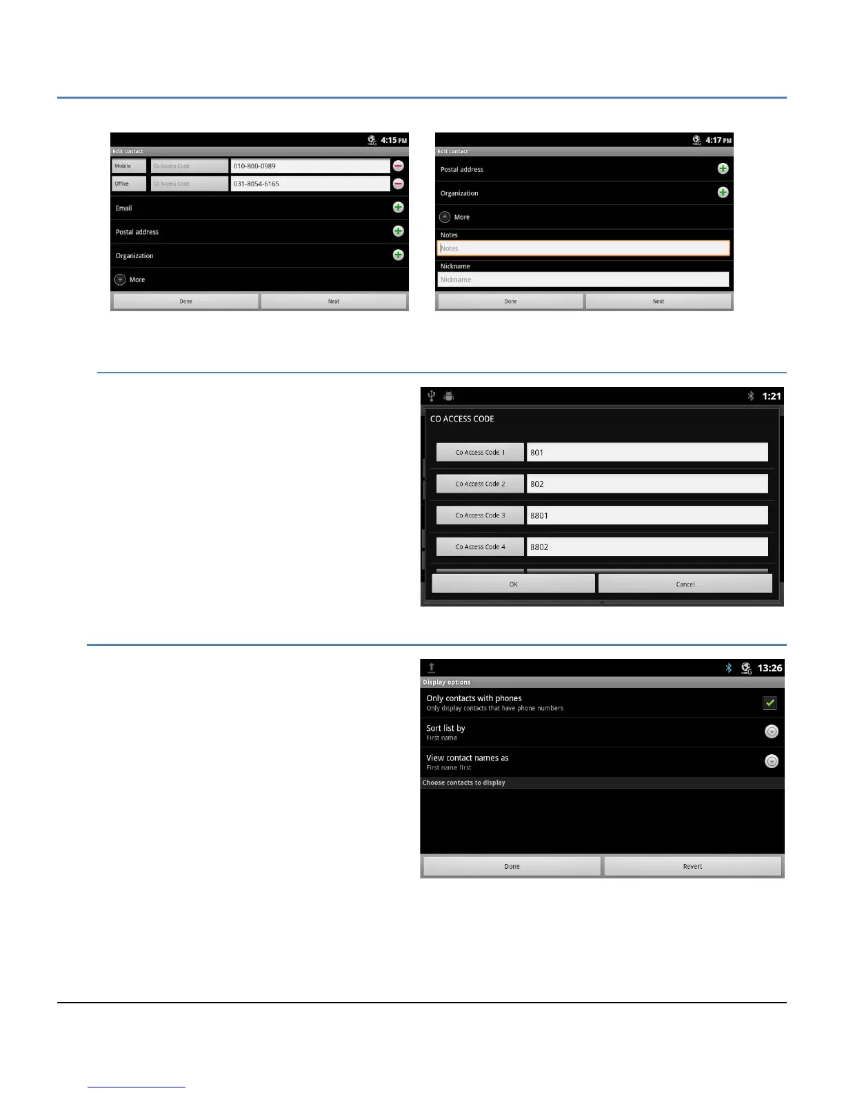 Touching the ‘Co Access Code’ button displays a