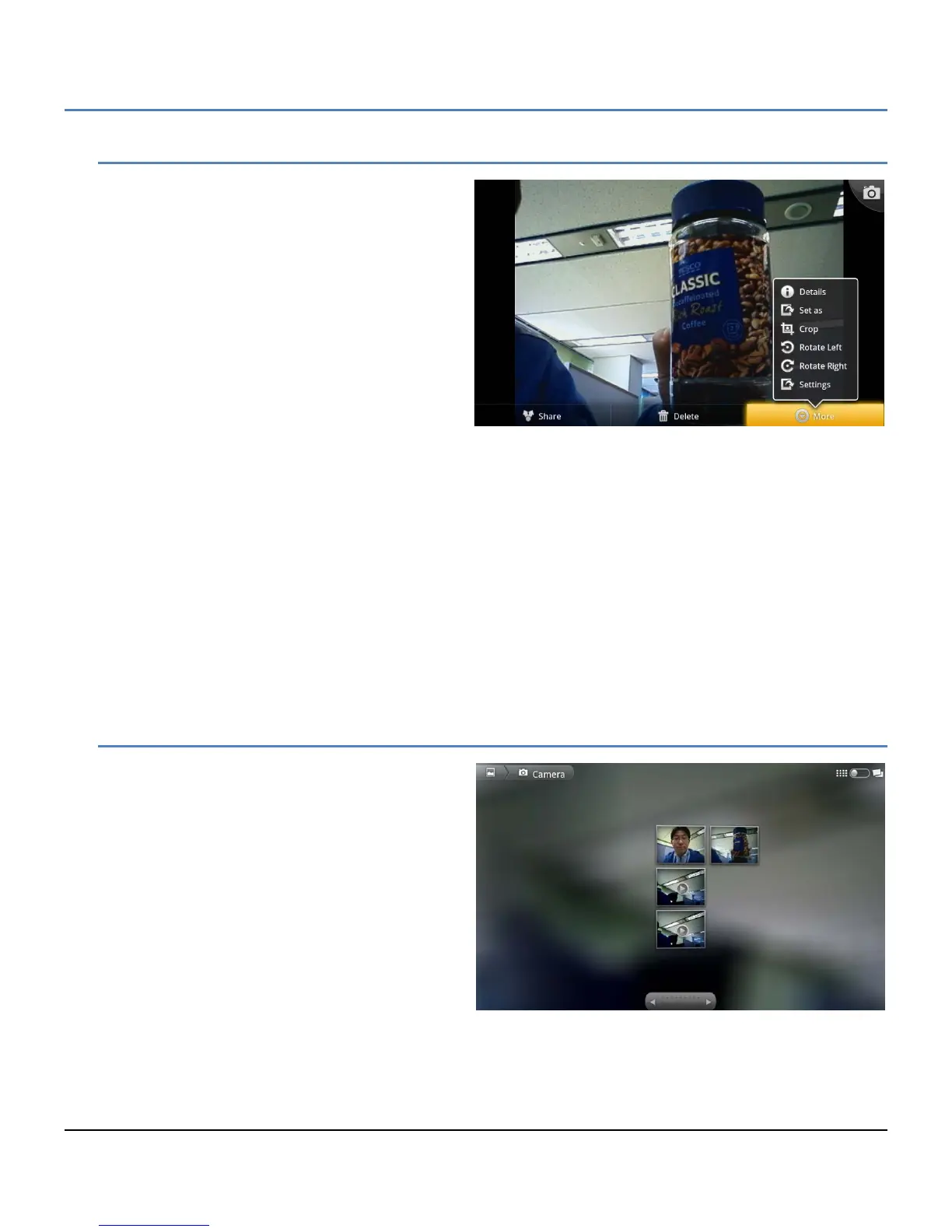 To return to the Camera, touch the Camera in the upper right corner of the review screen to take a picture.