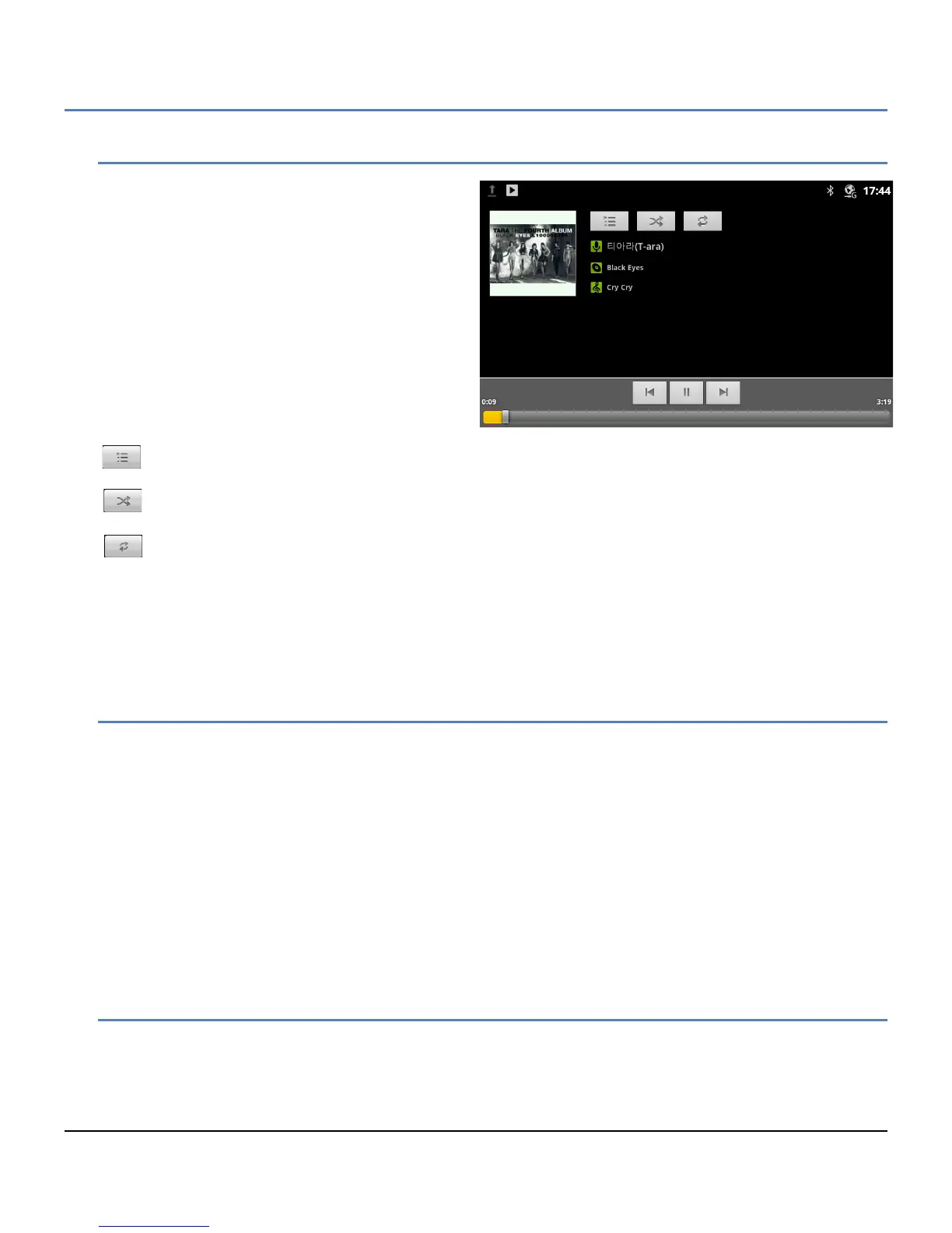 ° The music will continue to play even when you switch applications. Music stops when the last song in the