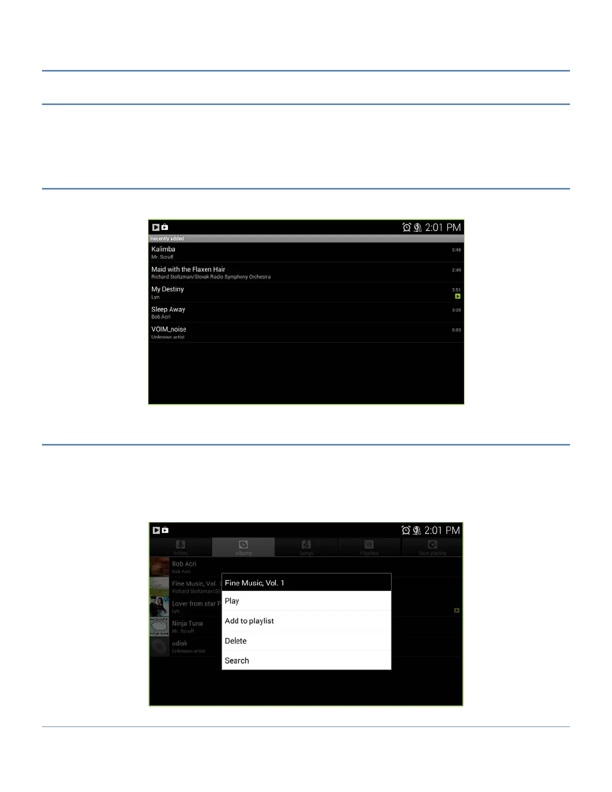 1. From a Library, touch and hold the first song title to add to the new Playlist.