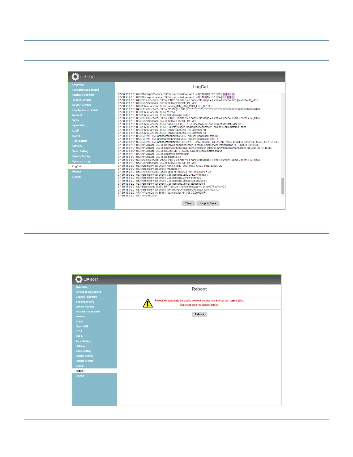 A reboot will terminate all network connections and registrations with an iPECS host. After the reboot the phone will