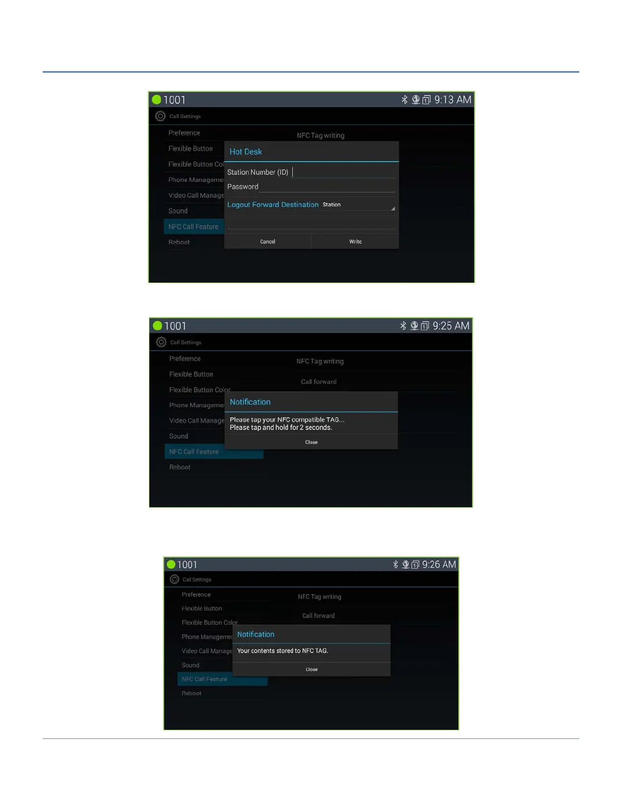 Then, tag the prepared NFC tag on the tag pad. User can cancel writing tag in this step by pressing “Close” button.