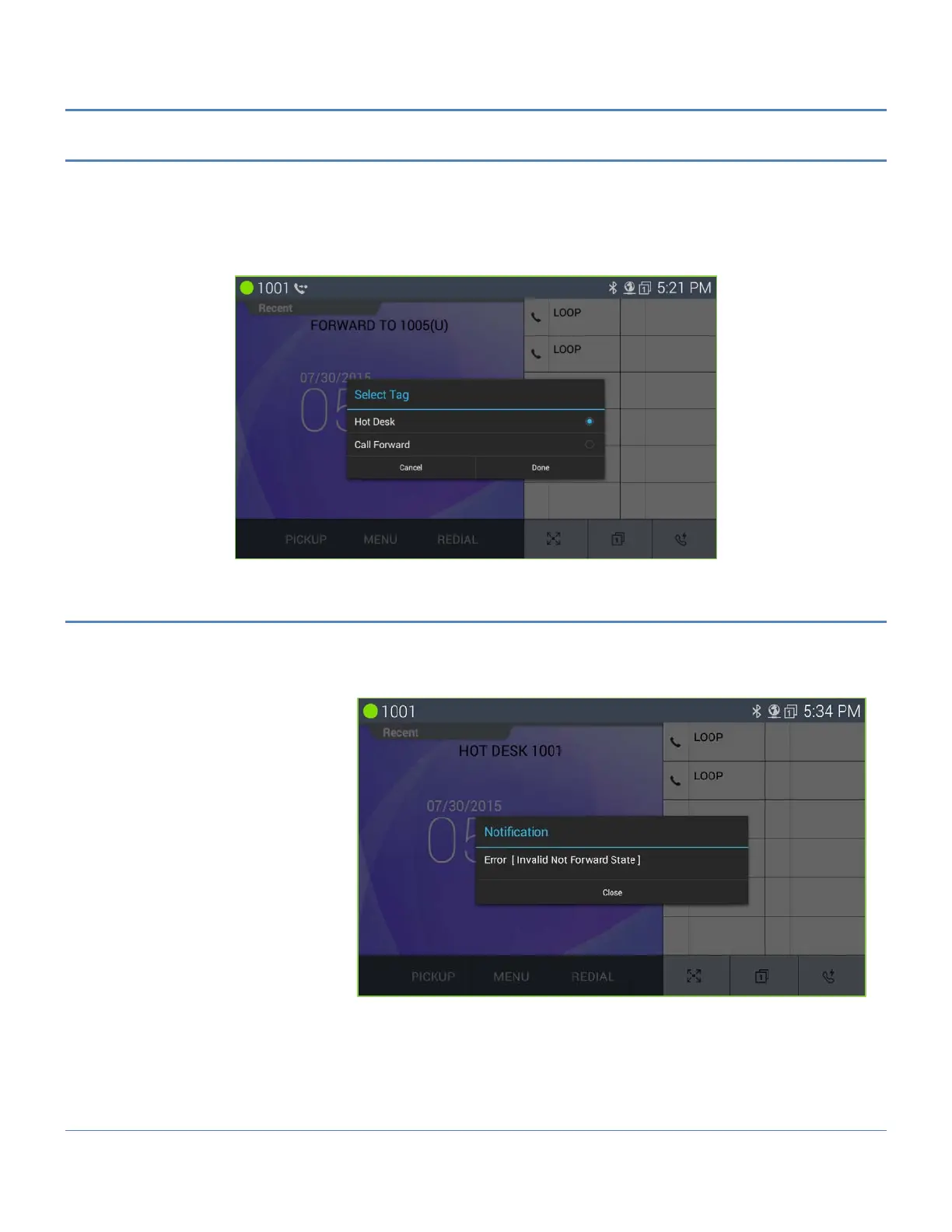 When user executes a call setting by using an NFC tag, LIP-9071 shows an appropriate error message for some
