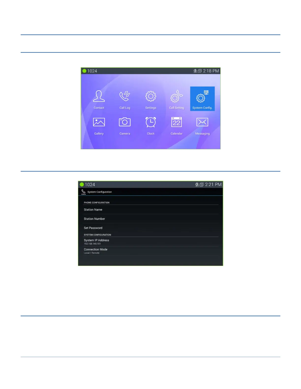 The System Configuration for iPECS Phone impacts Station name, number, password and system IP address. To