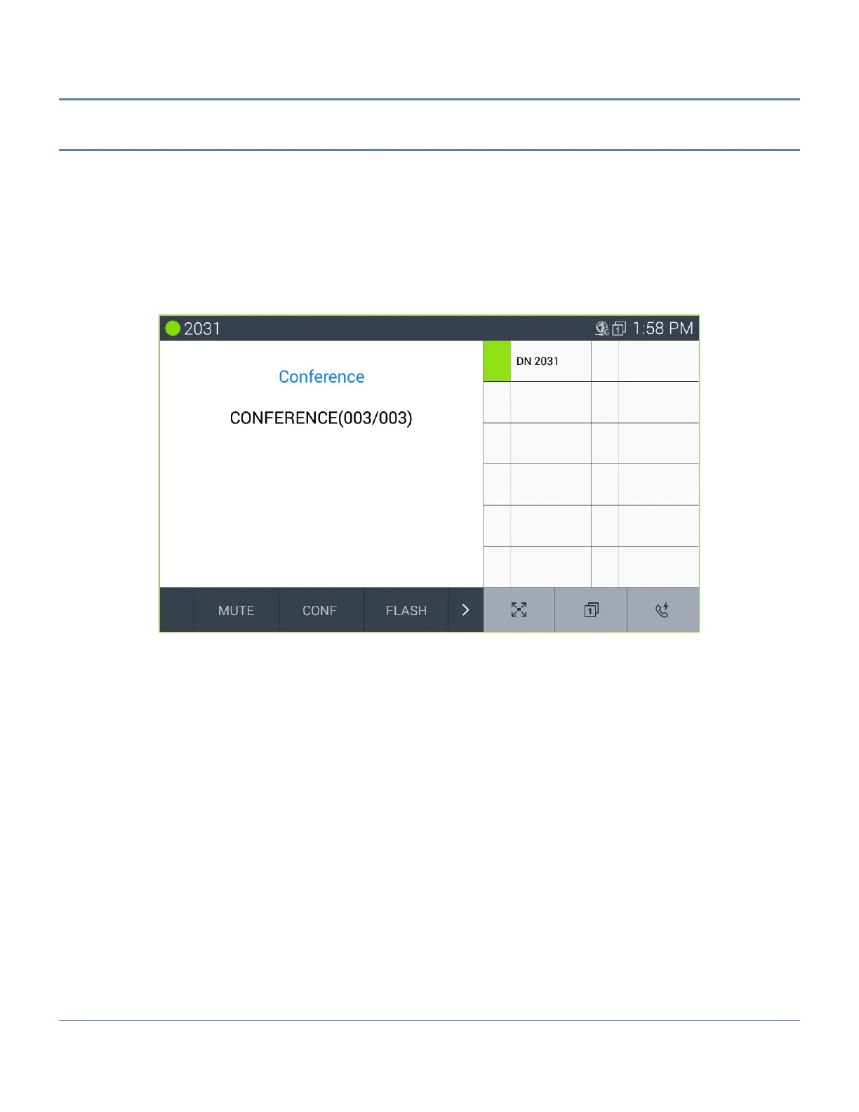 3. Place next call and press the CONF soft button.