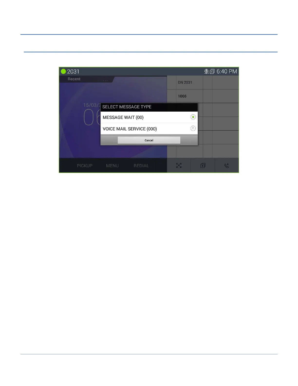 2. Select the message type ‘Message Wait’ radial button.