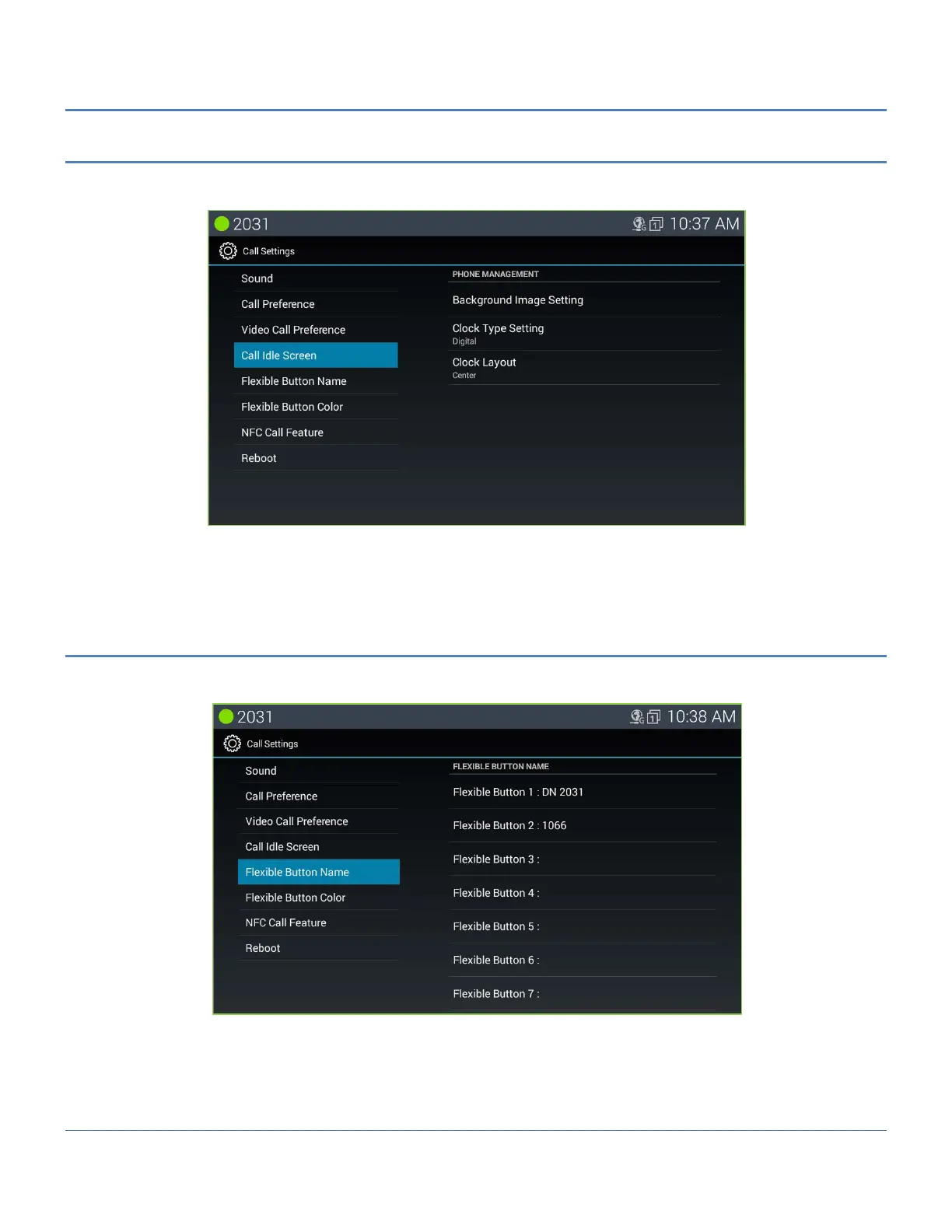 1. In the Call Setting screen, select Flexible Button name.