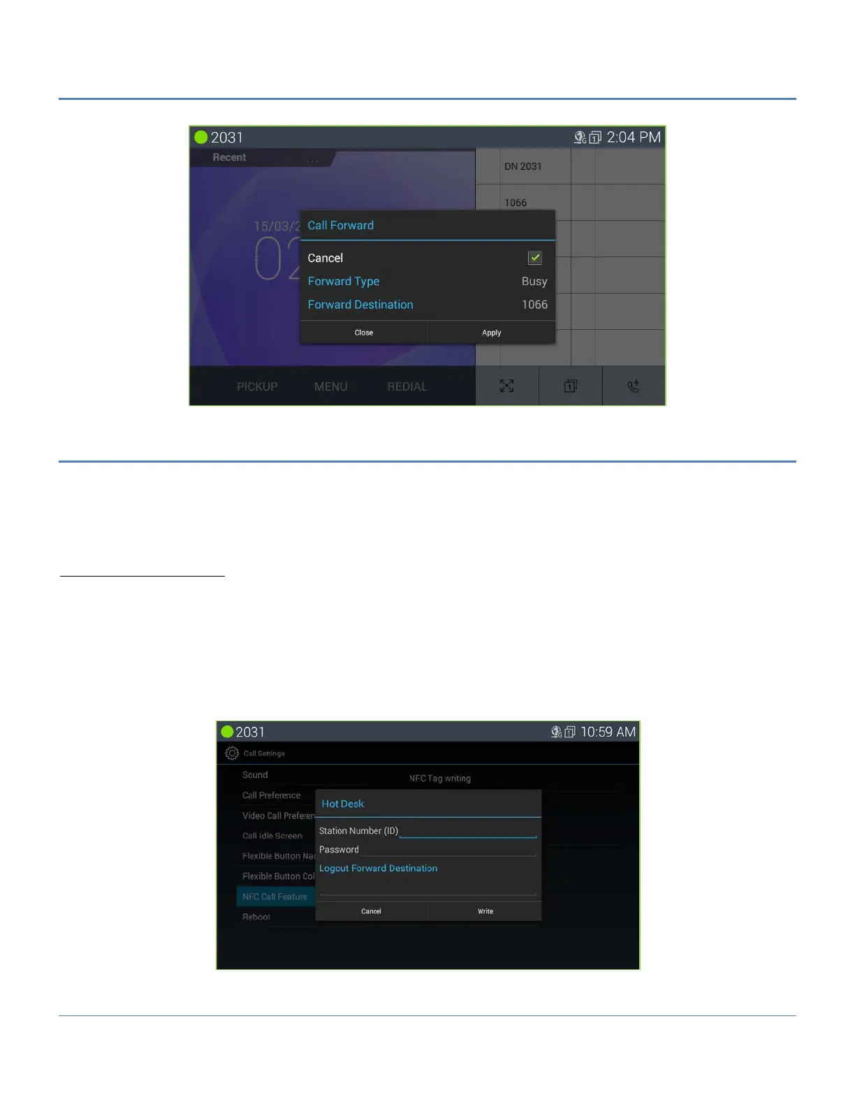 Except for the hot desk information input into the dialog window, and the rest of the process is the same as call forward