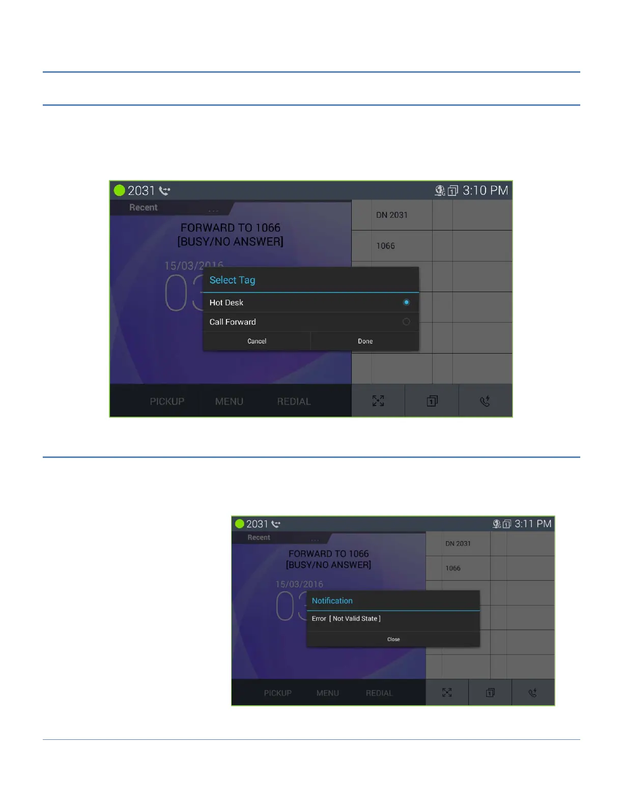 When user executes a call setting by using an NFC tag, LIP-9071 shows an appropriate error message for some