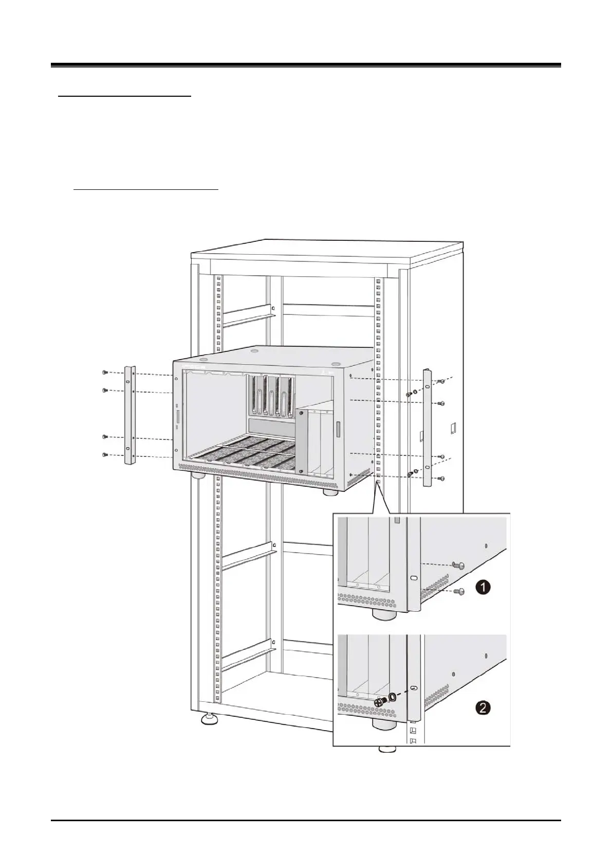2) Install the cabinet in the rack and secure Cabinet with 4 screws in the mounting flange holes.