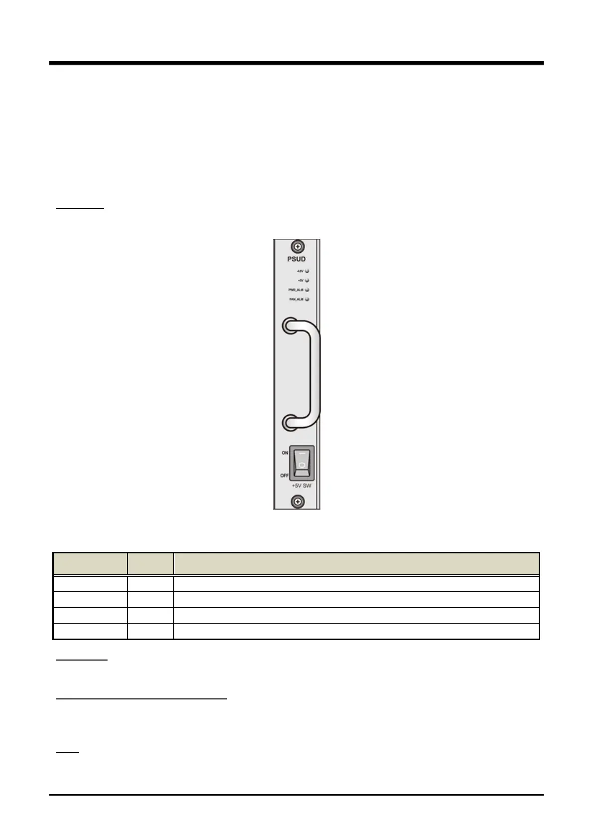 PSUD provides 4 statuses LED listed in the Table 3-2 below: