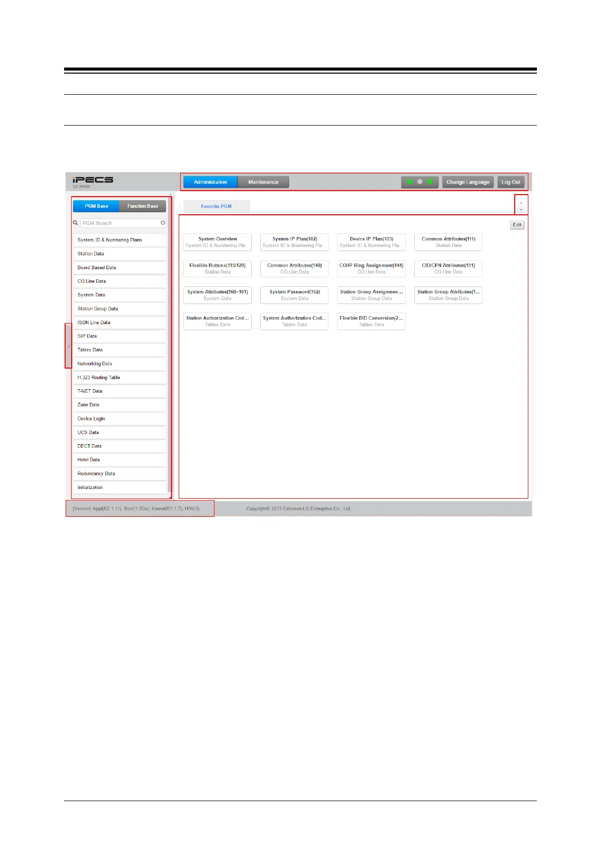 Figure 4.3-1 iPECS UCP Admin & Maintenance Main Page