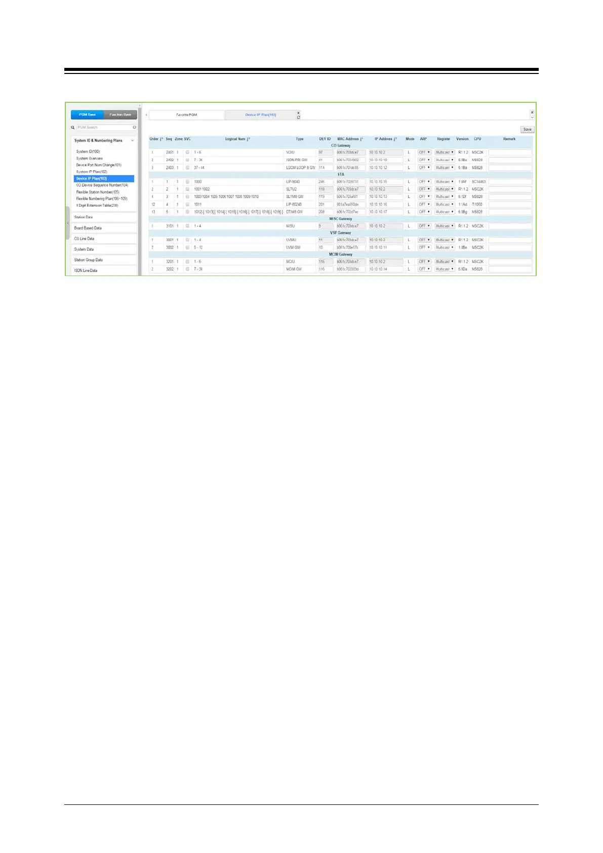 be used to modify the assigned IP address for each Gateway/board and iPECS Phone.