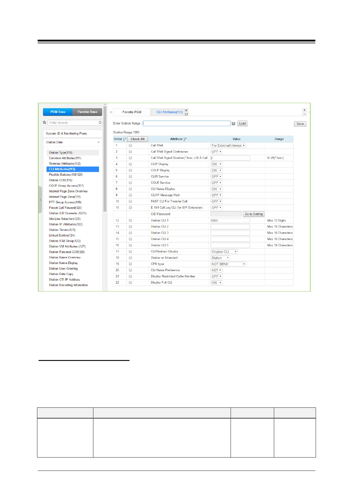 Selecting CLI Attributes will display the CLI Attributes data input page. Enter a valid station range