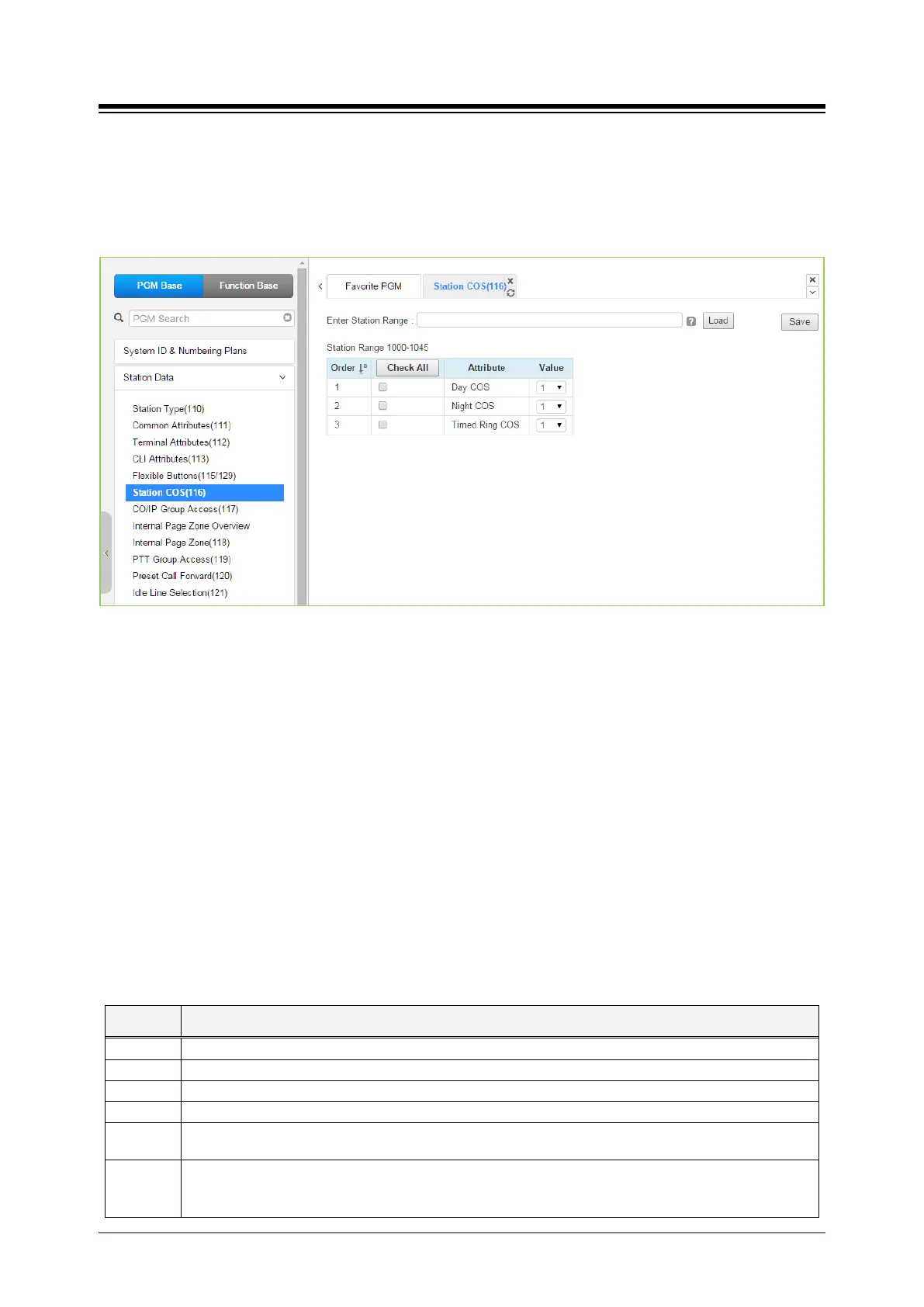 and click [Load] to enter the Station COS data. Use the check mark to indicate which attributes